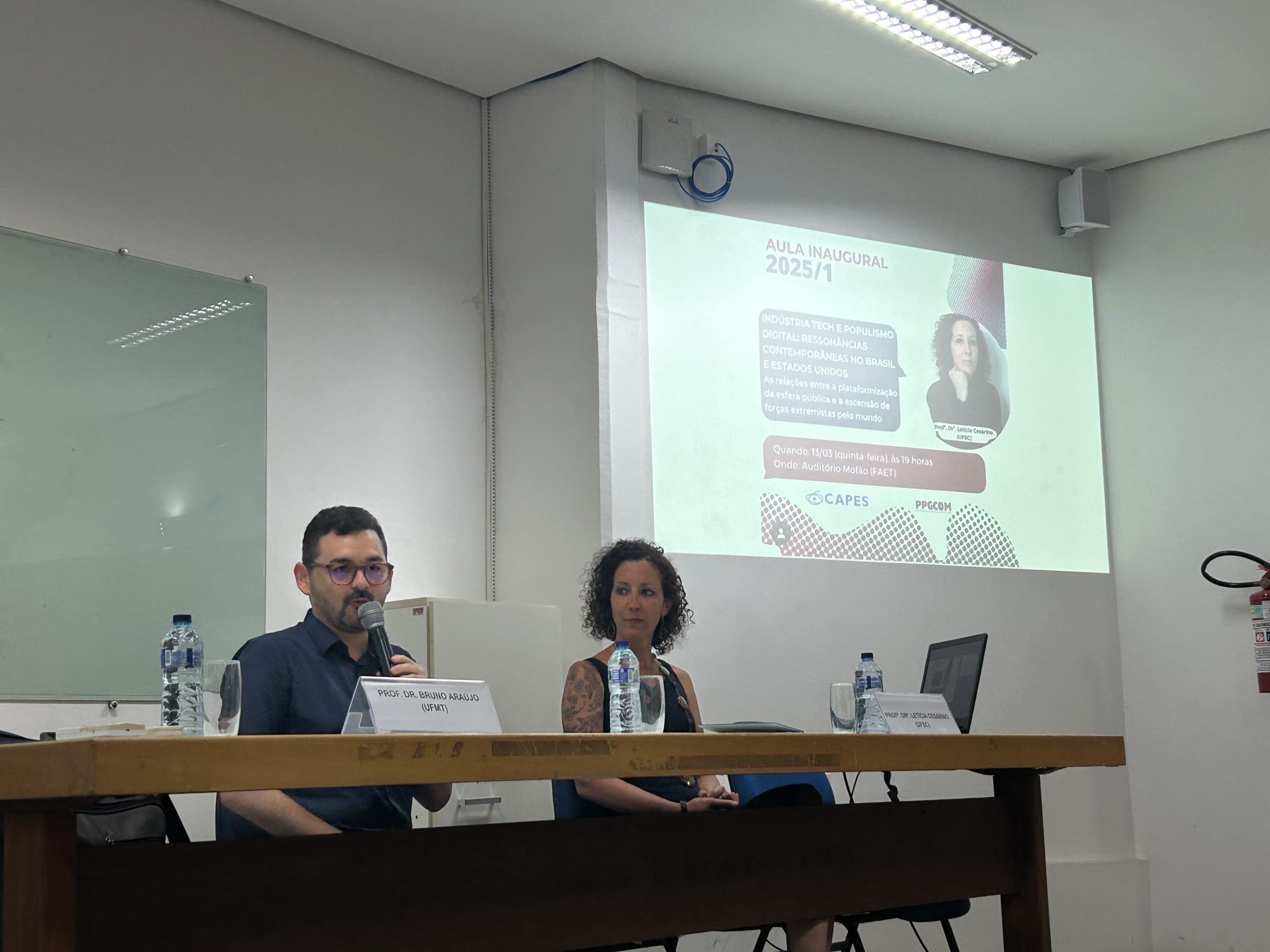 A aula ministrada abordou o tema “Indústria Tech e Populismo digital: ressonâncias contemporâneas no Brasil e EUA”, que apresentou resultados de estudos realizados pela pesquisadora, que é cientista social e se dedica a pesquisar o campo das humanidades digitais, ecologia da mente e pós-neoliberalismo.