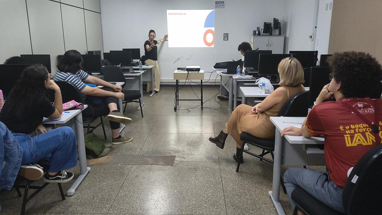 Entre os dias 24 e 26 de março, no período da tarde, a professora doutora Lucy Oliveira ministrou a oficina “Análise de conteúdo com Iramuteq”, no Laboratório H, do Instituto de Linguagens, com carga horária de 12 horas.